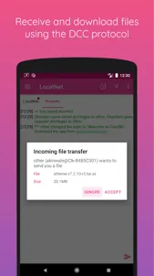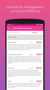 Basic features Multiple secure IRC connections Connect to several Internet Relay Chat (IRC) networks over SSL for encryption and added security. IRCv3 SASL and NickServ authentication Authenticate to configured servers with SASL PLAIN, SASL EXTERNAL or SASL SCRAM-SHA-256, or just using plain old NickServ. Receive files (DCC) Files can be received over the DCC protocol with resume support. Robust notification system Configure the notifications you want to receive for each network by channel, sender or message. Create as many notification rule sets as required so you don't miss anything important. Fun Extras • Inline URL previews Preview URLs posted in chat before opening them in your browser. Images can be turned off when displaying previews. • Now Playing script Post what you're currently listening to with Spotify, Google Play Music, Amazon Music, Poweramp and more in joined channels. • System Information script Display information about your device in a simple easy-to-read format. Supported commands are /sysinfo, /deviceinfo, /osinfo, /cpuinfo, /meminfo, /storage, /gfxinfo and /uptime Client-to-client protocol Support for common CTCP messages: ACTION, CLIENTINFO, DCC, FINGER, PING, TIME, and VERSION. Modern design for Android Designed following the latest Material design principles for the best user experience possible. Other features • Background connectivity using Android services • Command autocomplete • Channel list • Character sets • Chat logging with on-demand log file creation • Chat message storage • Ignore lists • IRC v3 CAP 302, cap-notify, message-tags, setname • IRC v3.1 account-notify, away-notify, extended-join, multi-prefix • IRC v3.2 account-tag, batch, chghost, echo-message, invite-notify, labeled-response, Monitor, msgid, server-time, userhost-in-names • IRC / mIRC colour support • Network editor with multiple servers • Nick autocomplete • Proxy connection • Raw commands using /quote • Timestamps • UI themes • and more Do you have feedback or feature requests that you'd like to share? Chat with us on #coreirc at irc.coreirc.com, or visit https://chat.coreirc.com in your web browser.