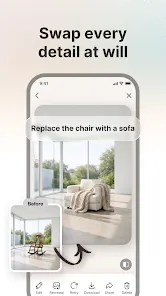 Replace furniture, decor, lighting, and materials with AI — preview before you buy.