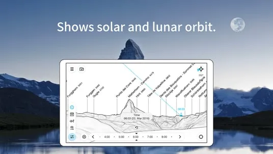 The mountains are calling! Explore more mountains than any mountaineer! PeakFinder makes it possible… and shows the names of all mountains and peaks with a 360° panorama display.This functions completely offline - and worldwide!PeakFinder knows more than 1'000'000 peaks - from Mount Everest to the little hill around the corner.•••••••••Winner of several prizes. Highly recommended by nationalgeographic.com, androidpit.com, smokinapps.com, outdoor-magazin.com, themetaq.com, digital-geography.com, …•••••••••••• Features •••• Works offline and worldwide• Includes more than 1'000'000 peak names• Overlays the camera image with the panorama drawing *• Realtime rendering of the surrounding landscapes in a range of 300km/200mil• Digital telescope to select less prominent peaks• 'Show me'-function for visible peaks• Selection of the viewpoint by GPS, the peak directory or an (online) map• Mark mountains and places you like• Can fly like a bird from peak to peak and vertically upwards• Shows the solar and lunar orbit with rise and set times• Uses compass and motion sensors• Daily updates of the peak directory• Does not contain any recurring costs. You pay only once• Is free of advertising * On devices without a gyroscope and a compass sensor the camera mode is not supported.