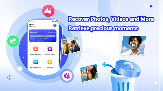 Photo Recover is a easy-to-use app that allows you to recover your deleted photos, videos, and other types of files with just a few simple steps.Main Function:♻ Photo Recovery - Lost your precious photos due to accidental deletion? Restore your deleted images with Photo Recover. With just a few taps, you can retrieve precious moments.More Functions:♻ Video Recovery - Support video recovery.♻ File Recovery - Support the recovery of various file types, including documents, and more.♻ View Recovered Files - Review what's been recovered and ensure nothing important gets overlooked. The interface is simple and intuitive, you can recover files in just a few simple steps, and you can get started quickly.Get Photo Recover today and recover your deleted files with ease!-----Warm Tips-----Photo Recover only find and recover photos, videos, and other files that match specific path patterns (such as /./) in your phone’s storage. It also identifies and restores cached files deleted by other apps. All file scanning and recovery happens locally on your device and we do not upload any privacy-related information.* We cannot guarantee all files will be retrieved: It relies on your device model, storage medium and file-system status. Some files may not be recoverable.* Important: If you’ve done a factory reset on your phone, files deleted before the reset cannot be recovered.