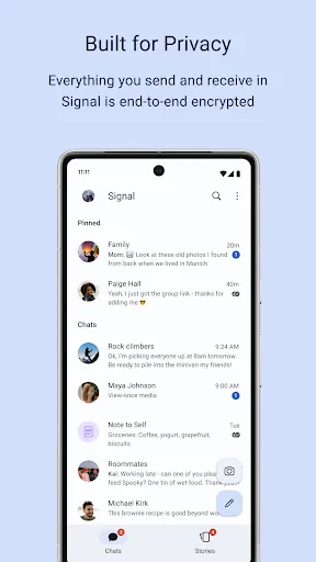Signal is a privacy‑focused, open‑source messaging app developed by the Signal Foundation that provides end‑to‑end encrypted text messaging, voice and video calling, and media sharing. Designed for users who prioritize security and minimal data collection, Signal emphasizes strong cryptography, simple UI, and features that reduce metadata exposure while enabling private one‑to‑one and group communication across mobile and desktop platforms.